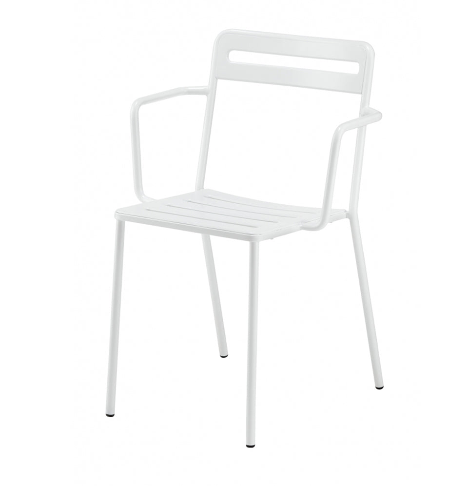 El asiento metálico C1.2 comparte la estructura y los acabados con el modelo C1.1, del cual representa la evolución natural gracias a la incorporación de dos cómodos brazos en tubo de hierro, que potencian su comodidad y portabilidad.