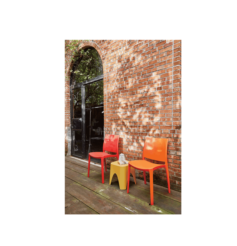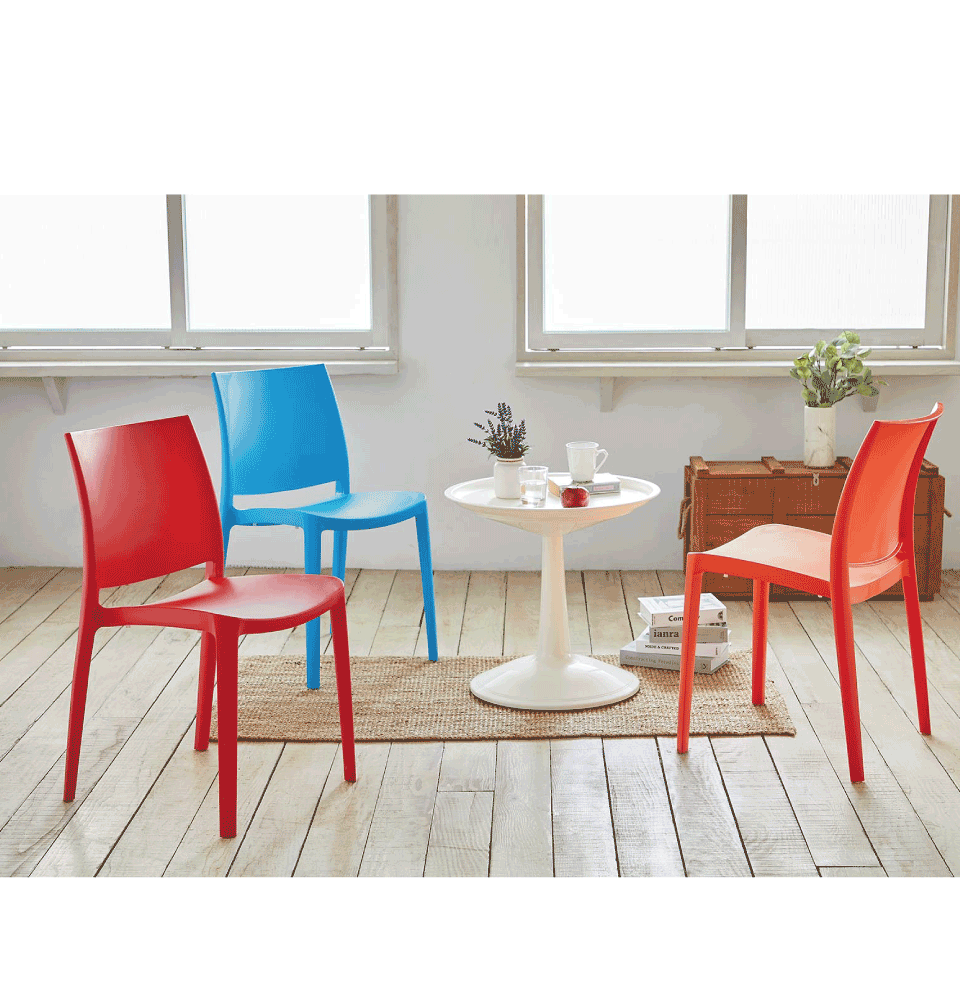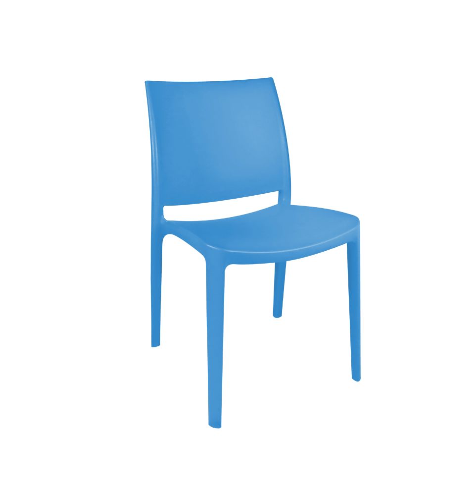 Patas, asiento y respaldo: de una sola pieza en polipropileno de alta resistencia y duración para intemperie, resistente a los rayos ultravioleta (UV) y al ambiente salino.