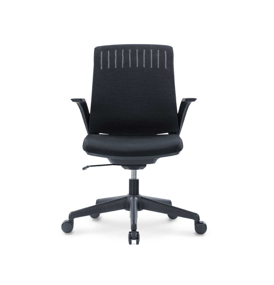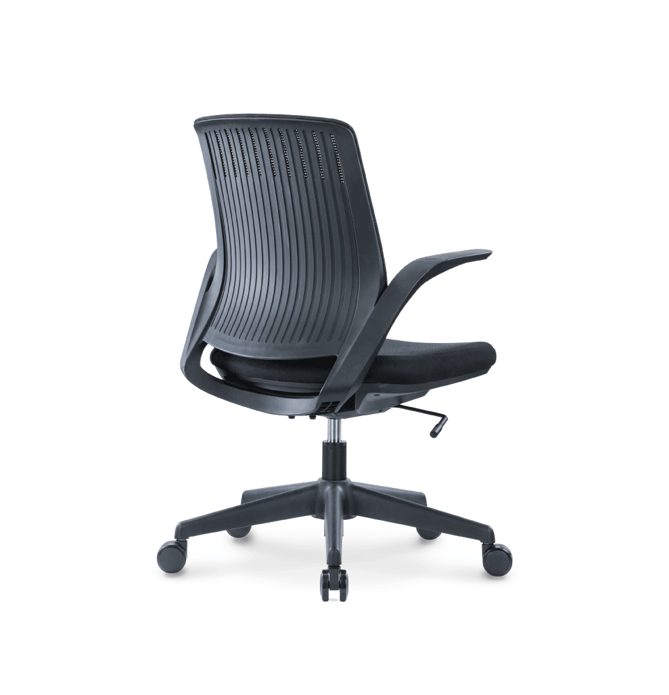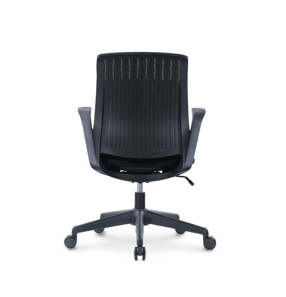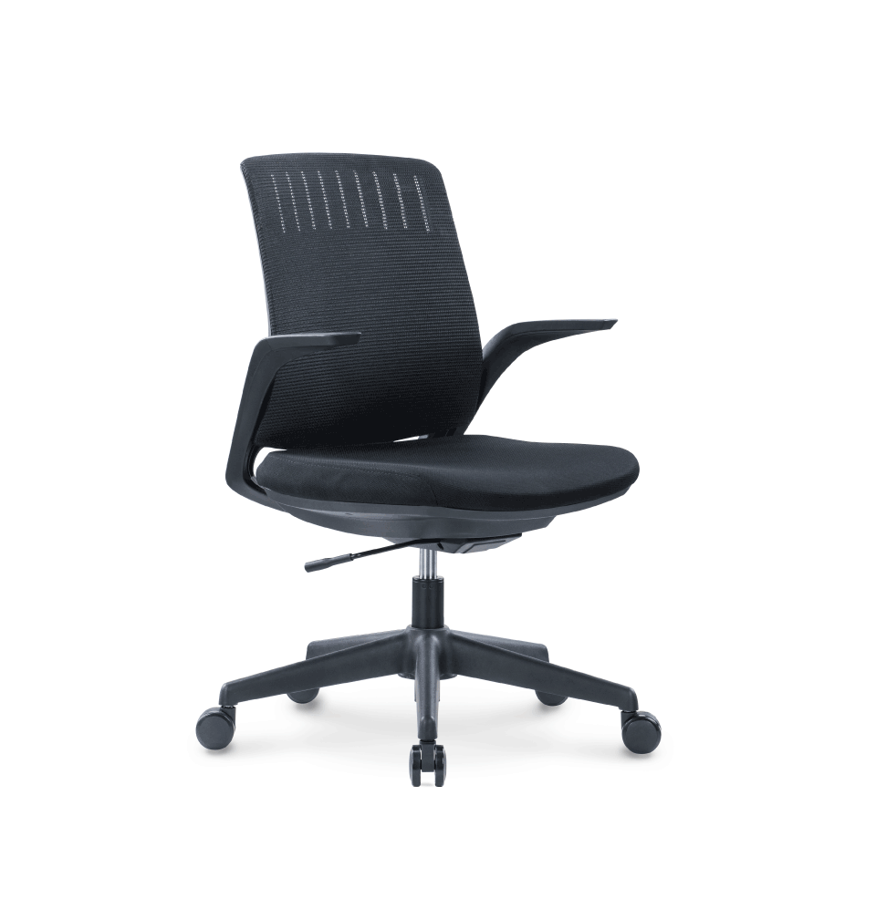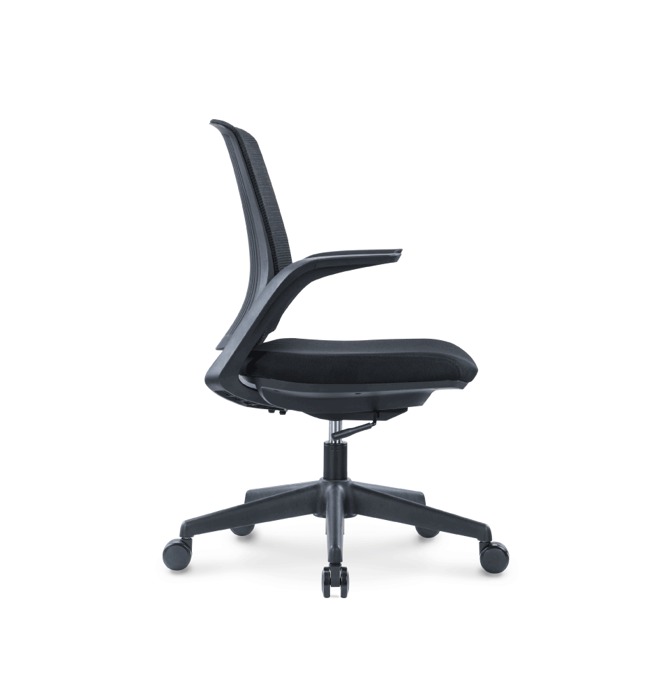 Tapizado: respaldo en malla en color negro y asiento tapizado en tela de color negro.